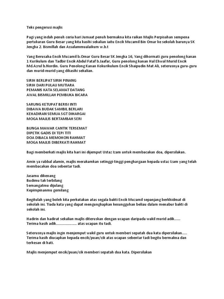 Teks Pengacara Majlis Perpisahan Ringkas Pdf